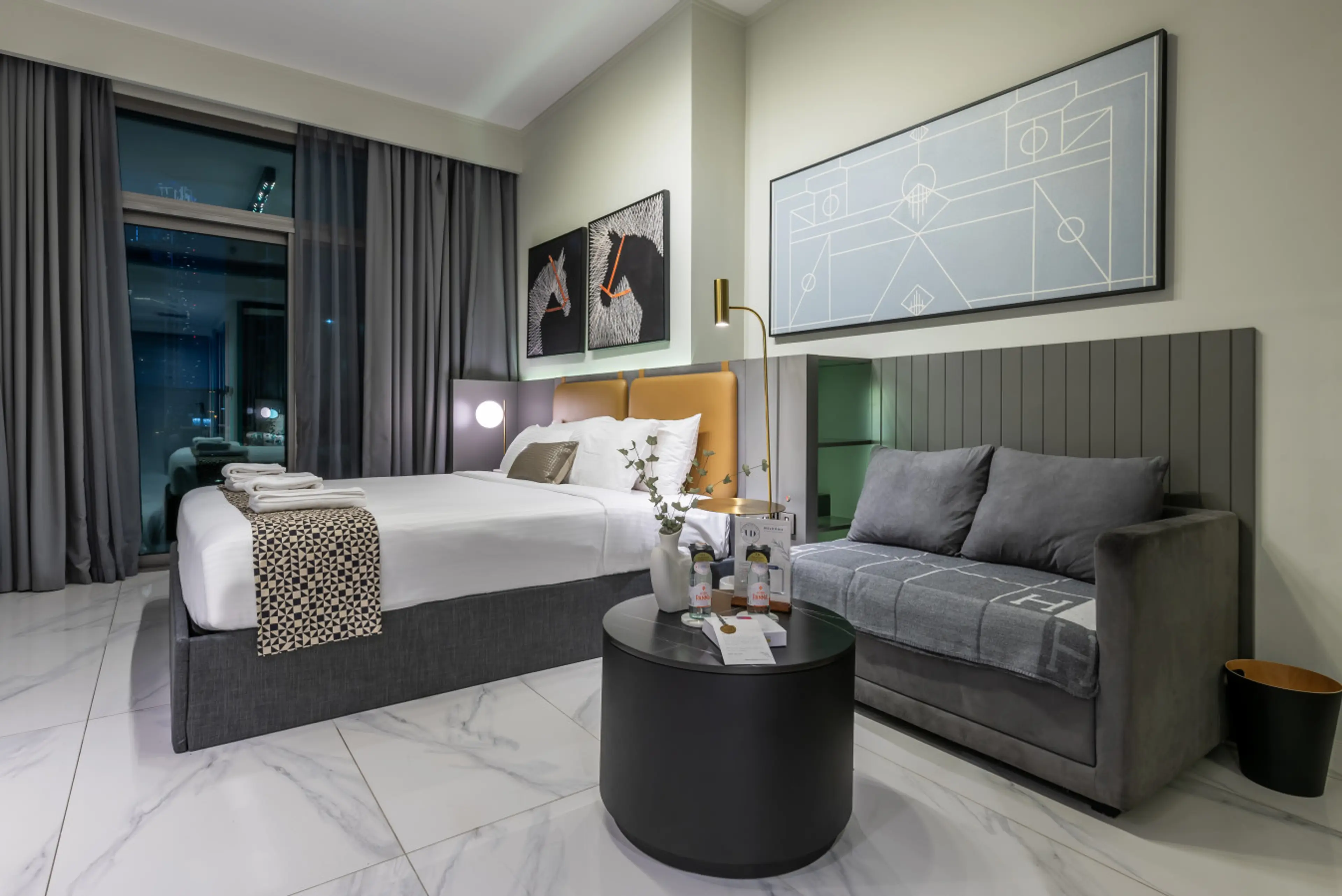 Experience the perfect urban retreat, just minutes from the iconic Burj Khalifa and the renowned Dubai Mall. Enjoy the convenience of your private coffee station, featuring a freshly brewed bean-to-cup machine with specialty coffee and flavors for a perfect start to your day. The 24/7 café within t...